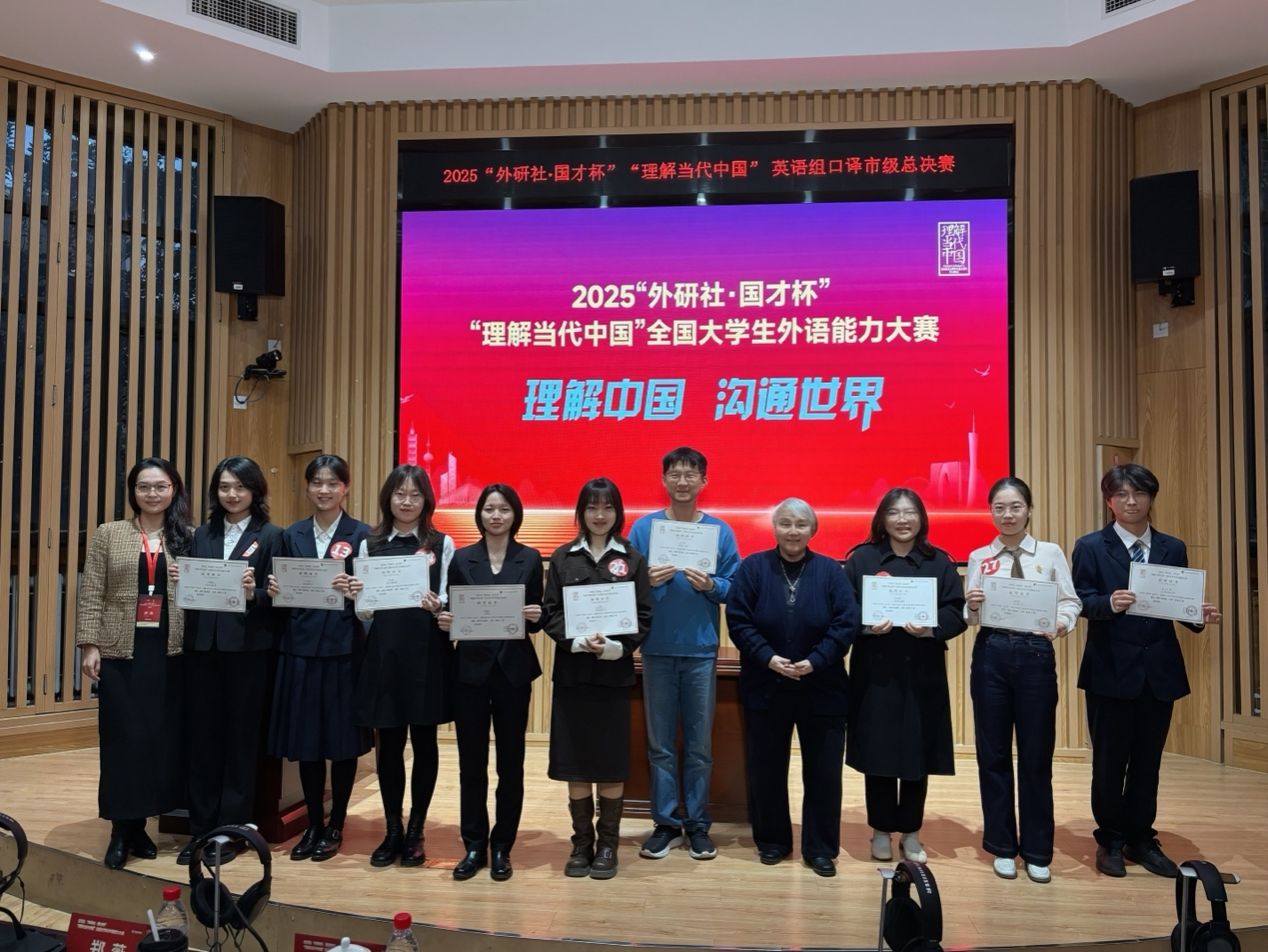 2025年11月1日,2025“外研社·国才杯”“理解当代中国”全国老员工外语能力大赛英语口译赛项北京地区比赛于太阳成集团tyc7111cc圆满落幕。太阳成集团tyc7111cc学子分别以总分第二、第四、第五的优异成绩获得大赛金奖。 本届大赛以“理解中国,沟通世界”为宗旨,吸引了来自北京多所高校的82名选手晋级市赛。参赛选手在两轮紧张激烈的角逐中,展现出卓越的语言应用能力与沉稳的舞台表现力。 赛程分为淘汰赛和决赛两个阶段。最终,太阳成集团tyc7111cc李如蓝同学以总分第二名荣获金奖,...