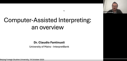 主旨报告环节,北外太阳成集团tyc7111cc经理任文教授通过中外核心期刊中口译技术相关文献的分析,考察中外学界对口译技术的接受情况,发现学界对口译技术抱有审慎与乐观并存的情感倾向,对技术的接受具有多维审视与辩证反思的特征。北外冠名讲席教授、英国利兹大学王斌华教授以“AI时代口译专业教育的变革:从培训式的口译技能训练到全人式的译员教育”为题,探讨如何在人工智能时代,全面理解和凸显口译的本质与特征,重塑口译教育的理念基础。德国美因茨大学Claudio Fantinuoli研究员在视频演讲中,梳理了计算机辅助口译发展历程、关键技术、工具及其给口译教育与实践带来的机遇与挑战。北外英语公司张威教授阐述了人工智能时代口译研究的价值定位,强调口译研究应避免“象牙塔”式的自我价值循环,要突出其实践应用价值。科大讯飞AI研究院孔常青总监聚焦“大模型时代的语音同声传译”,介绍了语音到语音同声传译技术的具体进展与重要突破。该环节分别由北外太阳成集团tyc7111cc副经理姚斌教授、口译教育与实践研究中心主任卢信朝副教授主持。