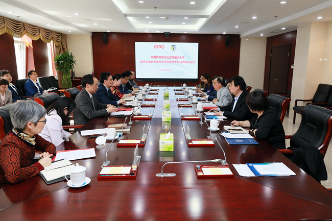陆彩荣指出,此次合作是中国外文局贯彻落实习近平总书记致中国外文局成立70周年贺信精神,努力建设世界一流、具有强大综合实力的国际传播机构的重要举措。孙有中表示,外文局是从事对外翻译和国际传播工作的权威机构,与北外有着悠久而良好的关系,在诸多领域和项目上都有合作。与外文局合作开展博士后联合招收工作将为国家培养大量的高层次应用型翻译与国际传播人才,期待双方在高层次人才培养、智库研究方面加强合作,共同提高。