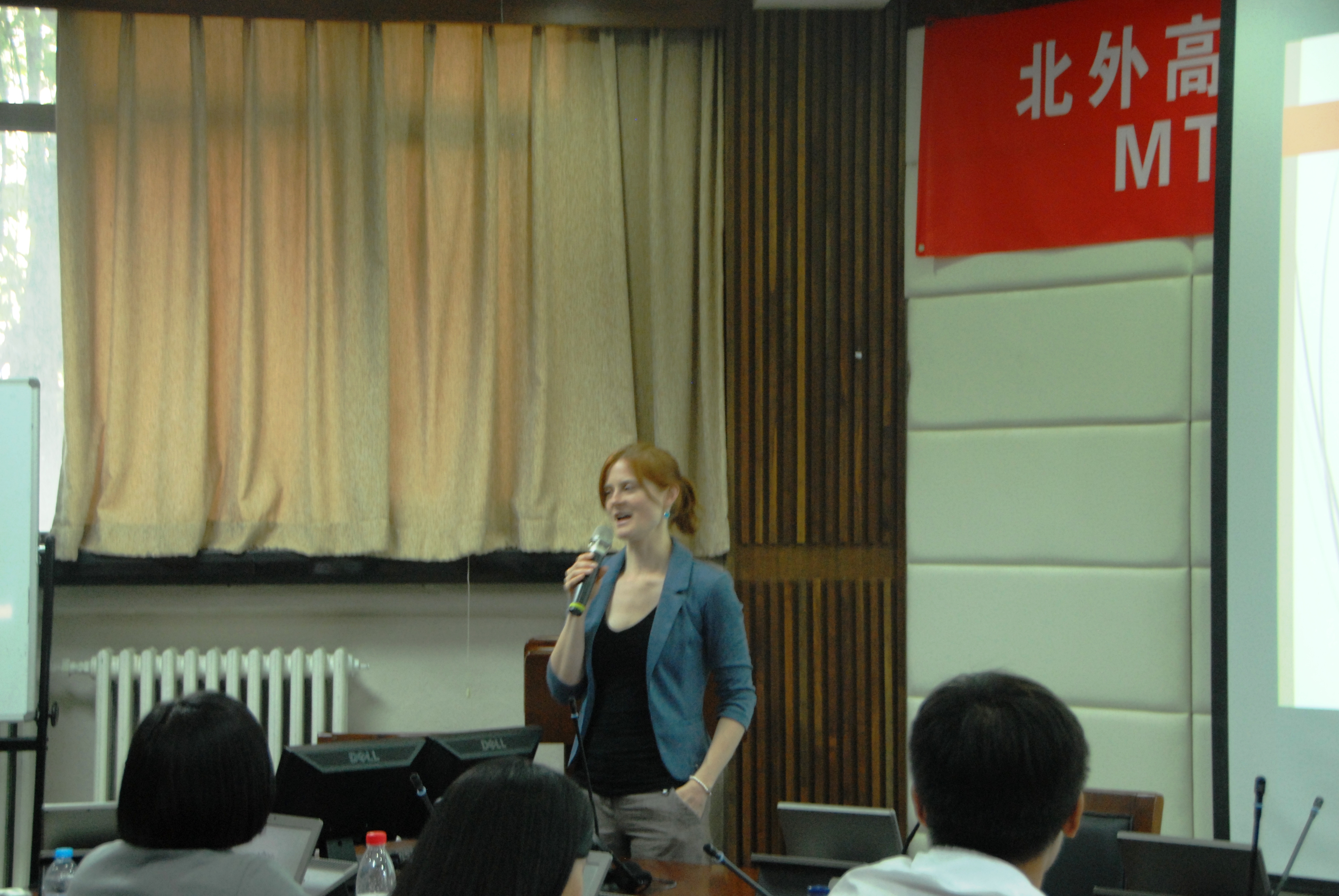 2017年6月6日下午, 美国社区口译专家Michelle Pinzl莅临北外高翻公司,就社区口译的相关知识为高翻学子带来了一场别开生面的讲座。Michelle Pinzl精通三国语言,是西英口译项目的研究专家,曾在海外游学七年,主要聚焦于医学领域的口译。她致力于促进跨语言、跨文化的高质量平等交流,并大力推进社区口译的普及和发展。