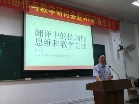 广西译协首届MTI协作与教学研讨会暨MTI研究生论坛于6月18日在广西大学外语公司举行。公司李长栓教授作为特邀嘉宾参会,并作题为“翻译中的批判性思维与教学方法”的发言。