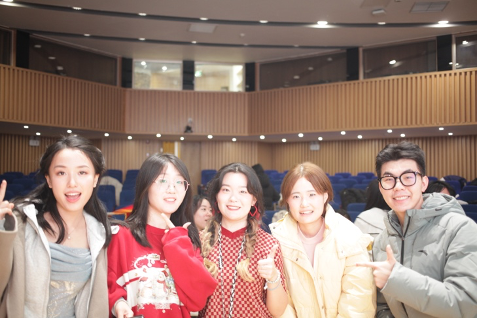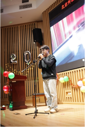 本次晚会上大家也一同观看了高翻院的老师们为全体2025级同学送出的特别祝福。视频中老师们关心同学们的生活、成长和学习,殷切嘱托同学们永存对语言的初心,保持纯真与好奇,在科技与世界格局快速变化的当下拥抱未知与挑战,勇于跨界,培养思辨能力,构筑起人类的主体性,感受翻译的美好与独特魅力。岁末寒冬,这一份充满深意的祝福无疑是晚会最温暖的瞬间。