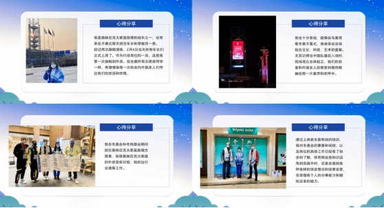 北京2022年冬奥会和残奥会期间,团支部有5名同学担任翻译志愿者,服务冰雪赛事,3名同学作为笔译志愿者服务于冬奥组委新闻宣传部。