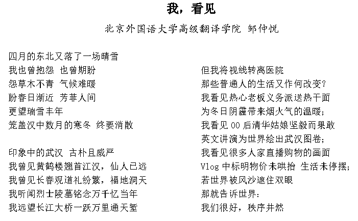——A Poem Dedicated to the Wuhan People