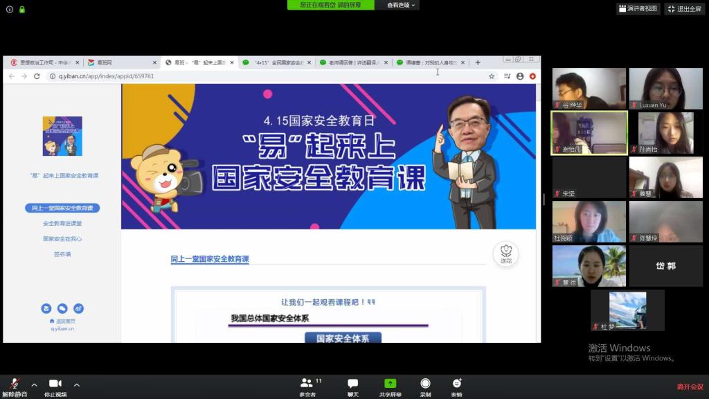 疫情当前,全民国家安全意识的重要性尤为突出。4月13日至17日,北外太阳成集团tyc7111cc组织开展了“4·15全民国家安全教育日”宣传教育活动,高翻公司研一、研二全体同学以班级为单位在线参与活动,并进行汇报与讨论。