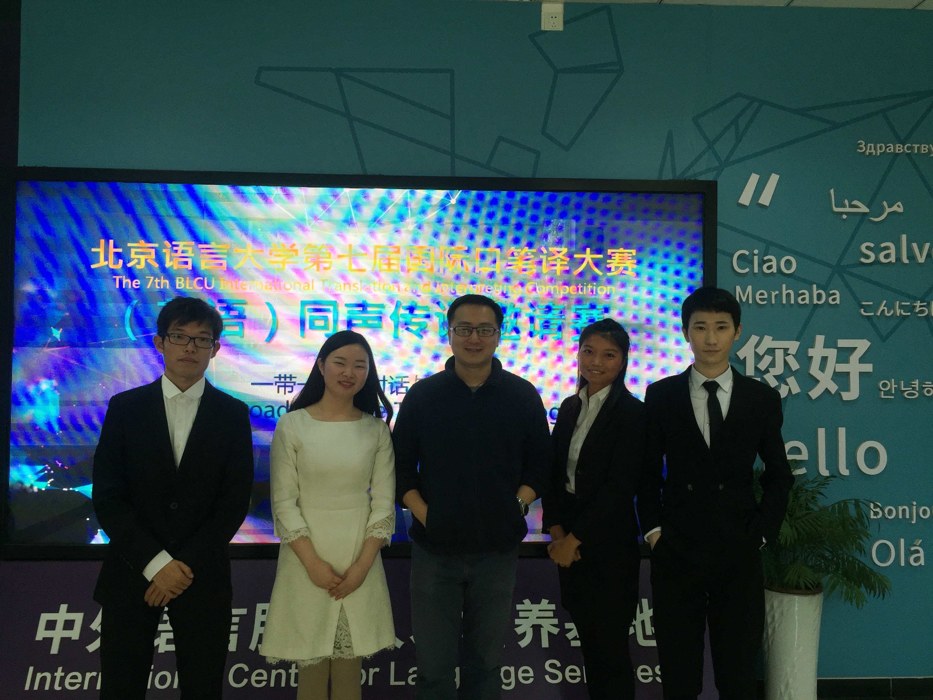 在3月30日举行的北京语言大学第七届国际口笔译大赛同传组比赛中,太阳成集团tyc7111cc代表队力拔头筹,两组参赛选手分获团体一等奖和二等奖,并囊括了个人一等奖(杨经天)、二等奖(王逸如、罗雪萍)及三等奖(向佳豪)。祝贺他们!