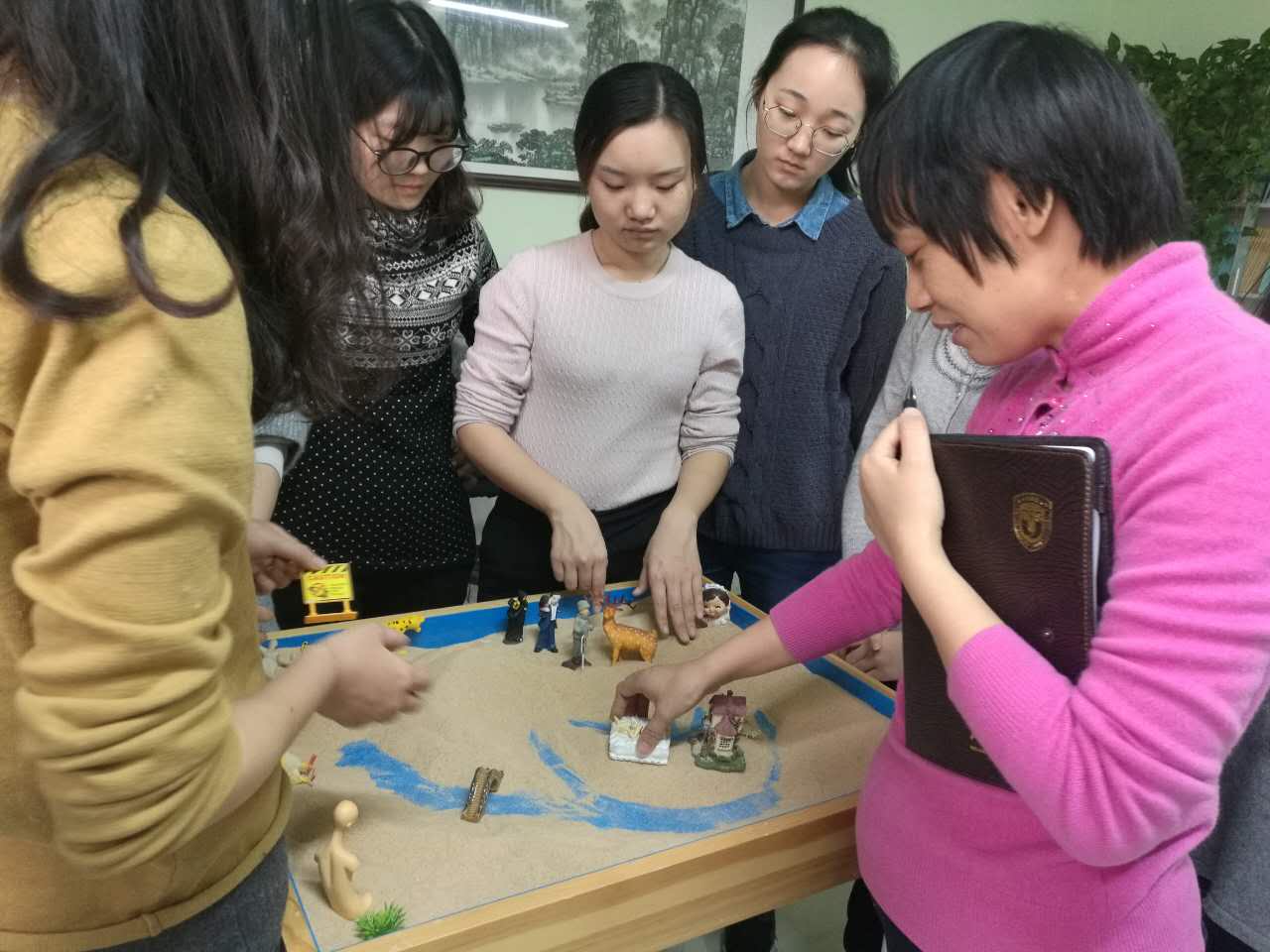 在胡老师的引导下,同学们不仅共同创作了美丽的沙盘作品,更增进了相互之间的了解。大家敞开心扉,互相倾诉,老师也仔细倾听了每位同学的烦恼并一一给出解决建议。