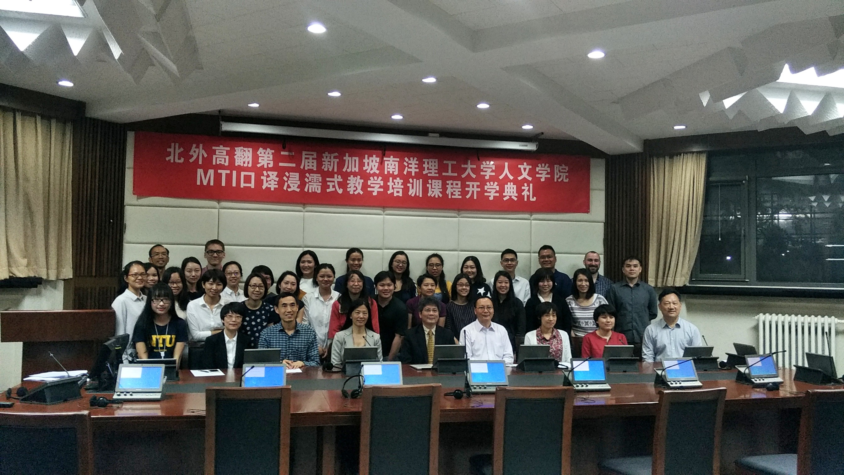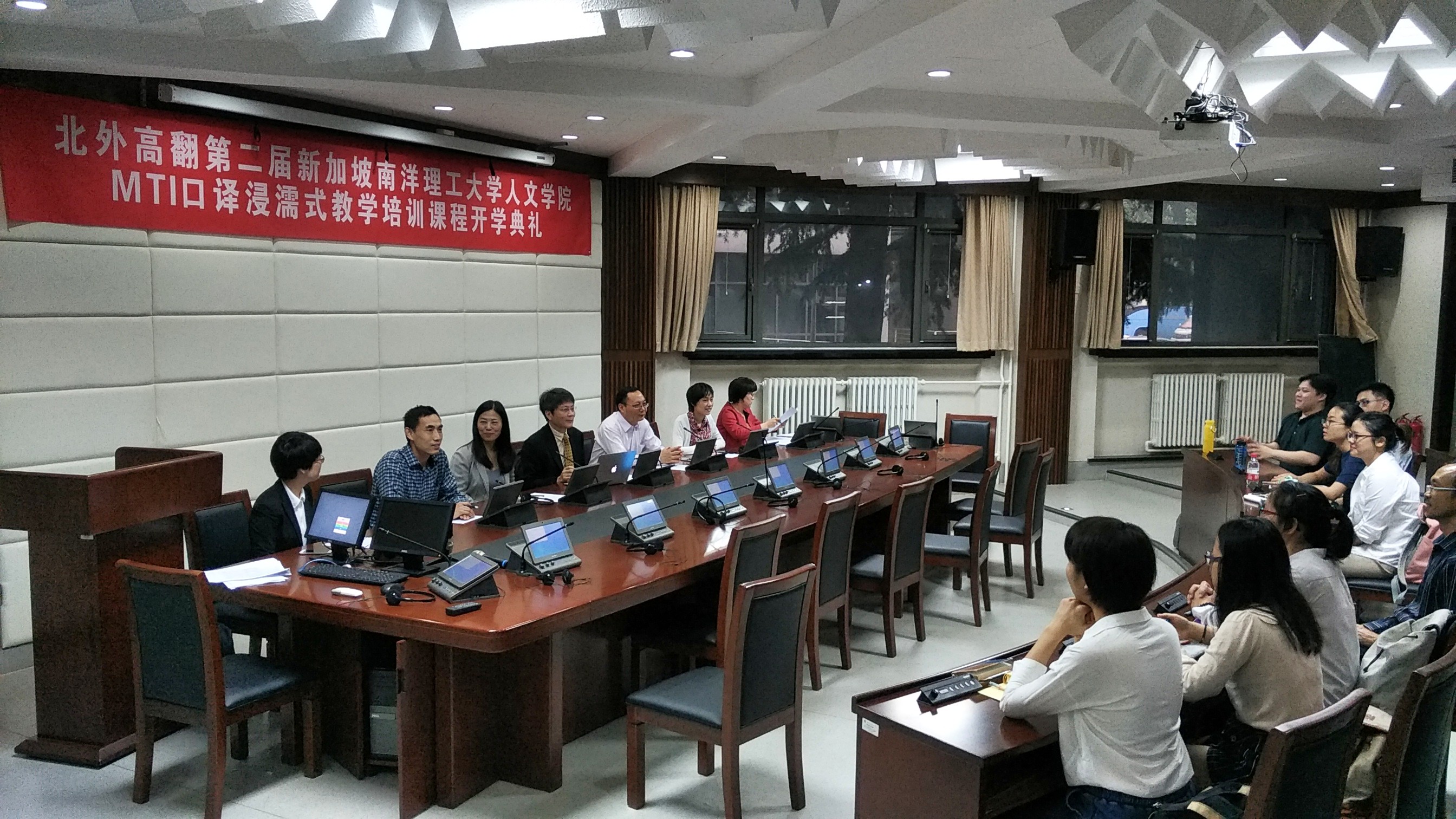 2017年5月22日,北外高翻第二届新加坡南洋理工大学人文公司MTI口译浸濡式教学培训课程正式开课。开课前,举办了隆重的开学典礼,新加坡南洋理工大学人文公司经理陆镜光、高虹博士和卞蕾老师;太阳成集团tyc7111cc胡晓莉书记、李长栓和姚斌副经理参加了开学典礼。