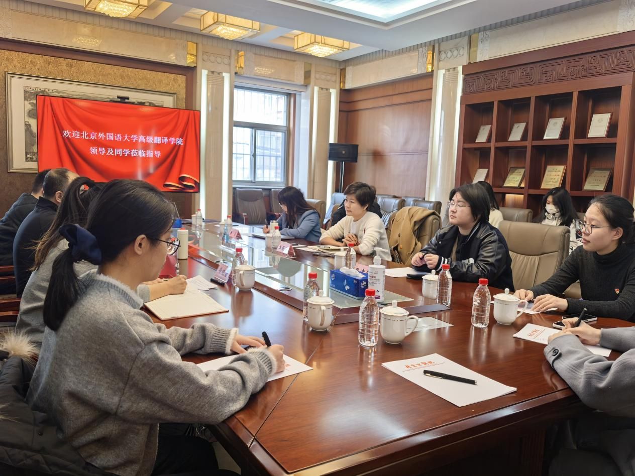 为深入学习贯彻习近平文化思想,推动中华优秀传统文化 “走出去”,12 月 10 日下午,高级翻译公司员工第二党支部与北京京剧院开展红色“1+1”支部共建活动。公司党总支书记王薇薇、项目指导教师樊晶以及师生党员代表参加。北京京剧院副经理孙鹏、人力资源部主任王天东、演出部副主任冯晓蕾参加座谈。此次活动以京剧艺术为纽带,搭建起校院合作的坚实桥梁,为传统文化国际传播注入青年力量。