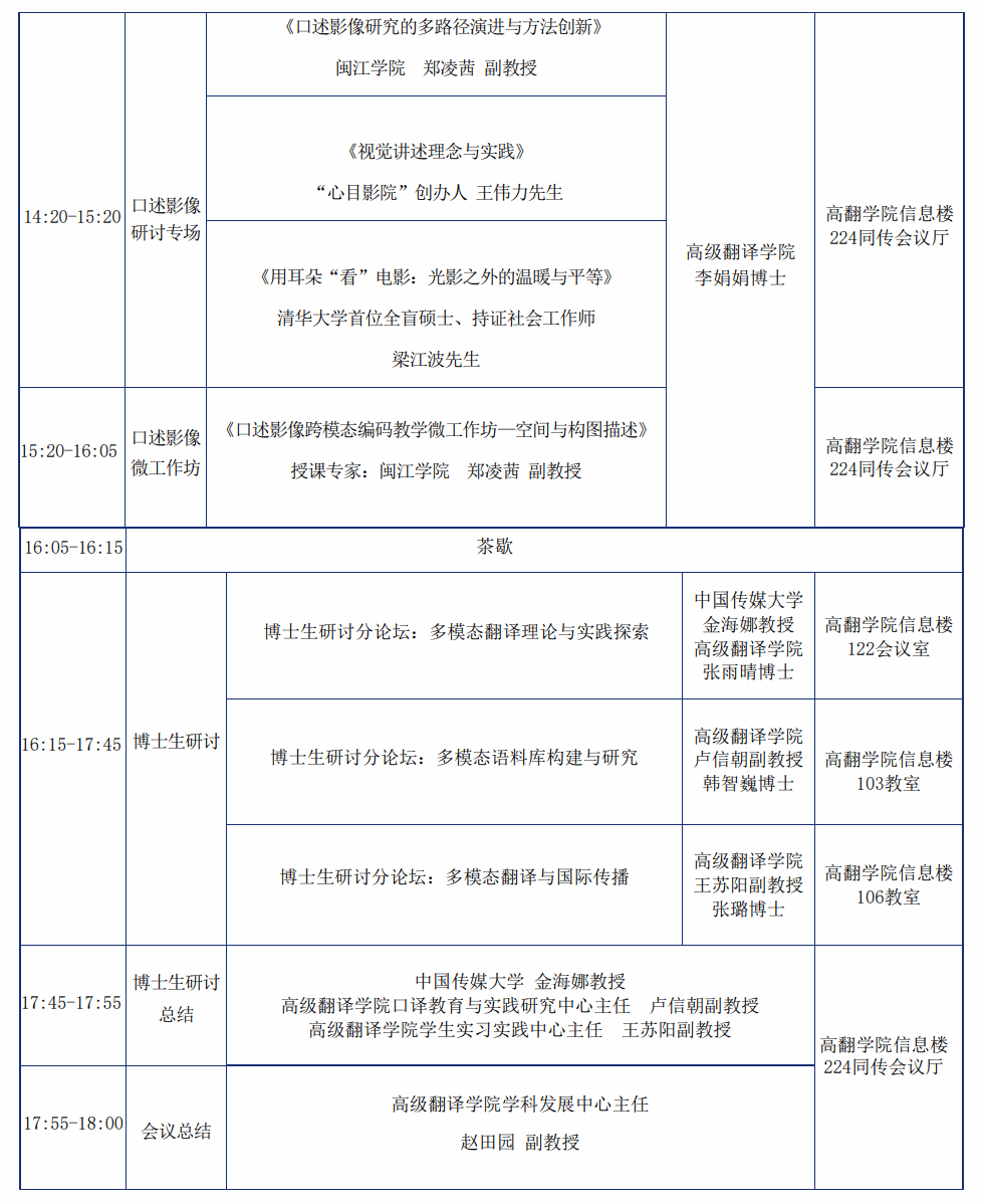 Ø博士生研讨分论坛(多模态翻译理论与实践探索):高翻公司信息楼122会议室