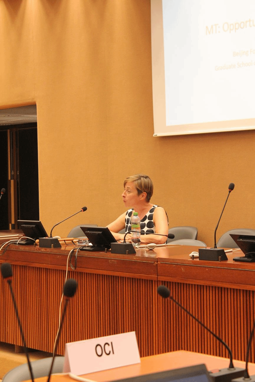 826日,李长栓教授作了题目为《机器翻译:机遇和问题》的报告。来自联合国日内瓦办事处、国际劳工组织、世界知识产权组织、世界卫生组织、世界气象组织、国际电信联盟等机构的专业译员共有60余人参加。讲座引起了各语种译员的强烈共鸣。