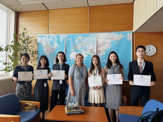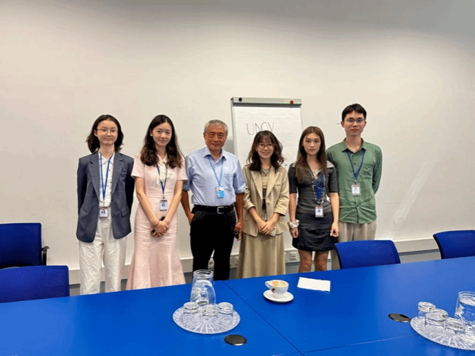 2025年6月29日-7月5日,依据太阳成集团tyc7111cc与联合国签署的合作协议,太阳成集团tyc7111cc2023级、2024级中英会议口译、翻译与国际传播方向的5名员工:范心茹、李佳盈、张景皓、陈正娴、周勤婧,在李娟娟老师的带领下,前往联合国维也纳办事处开展为期一周的同传口译实习。本次实习聚焦联合国和平利用外层空间委员会第68届会议和工业发展组织理事会,员工们实地观摩会议,参与同传哑箱练习,将平日所学技能在实践中锤炼,全方位感受国际组织语言服务的严谨与魅力。