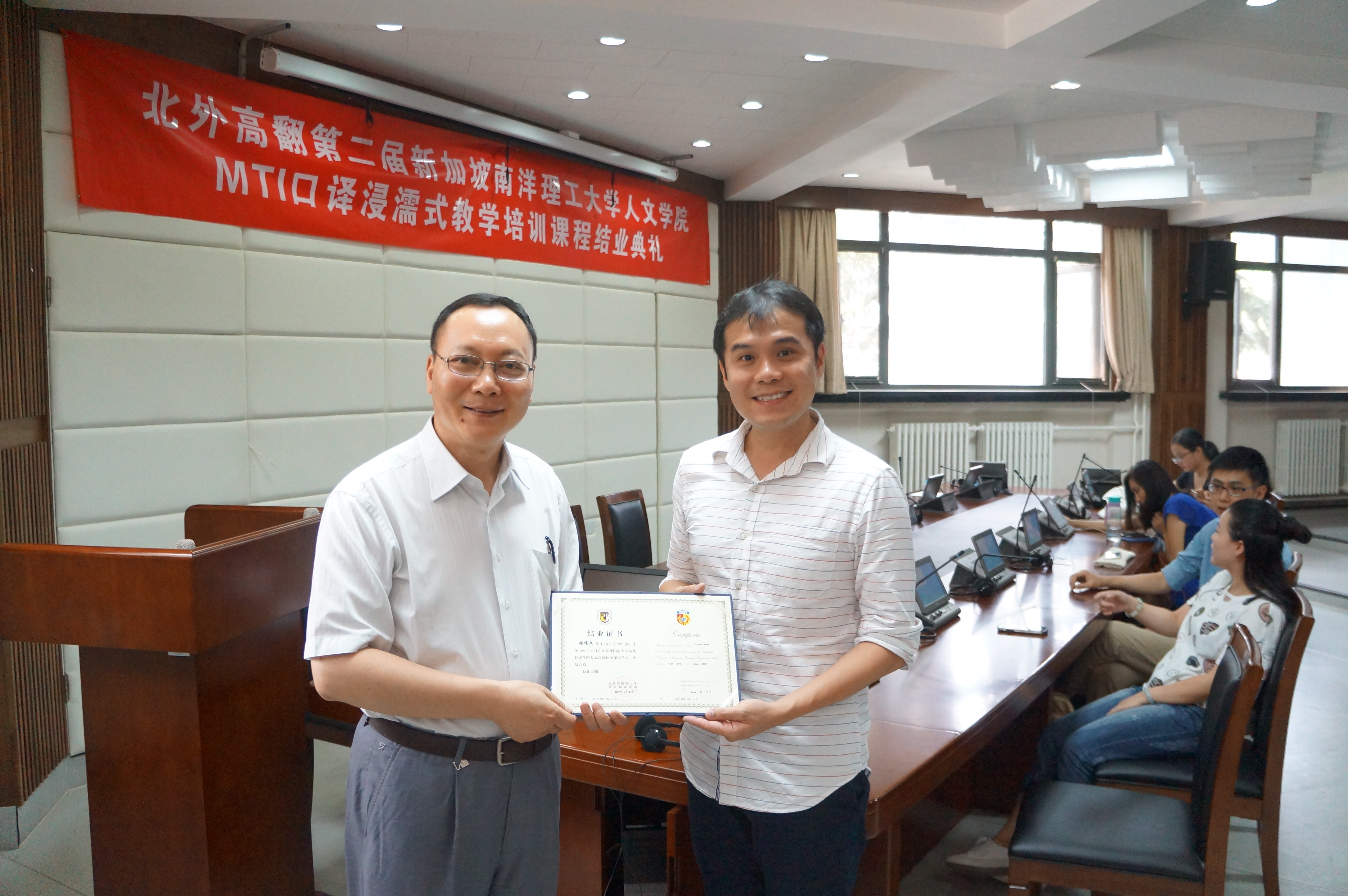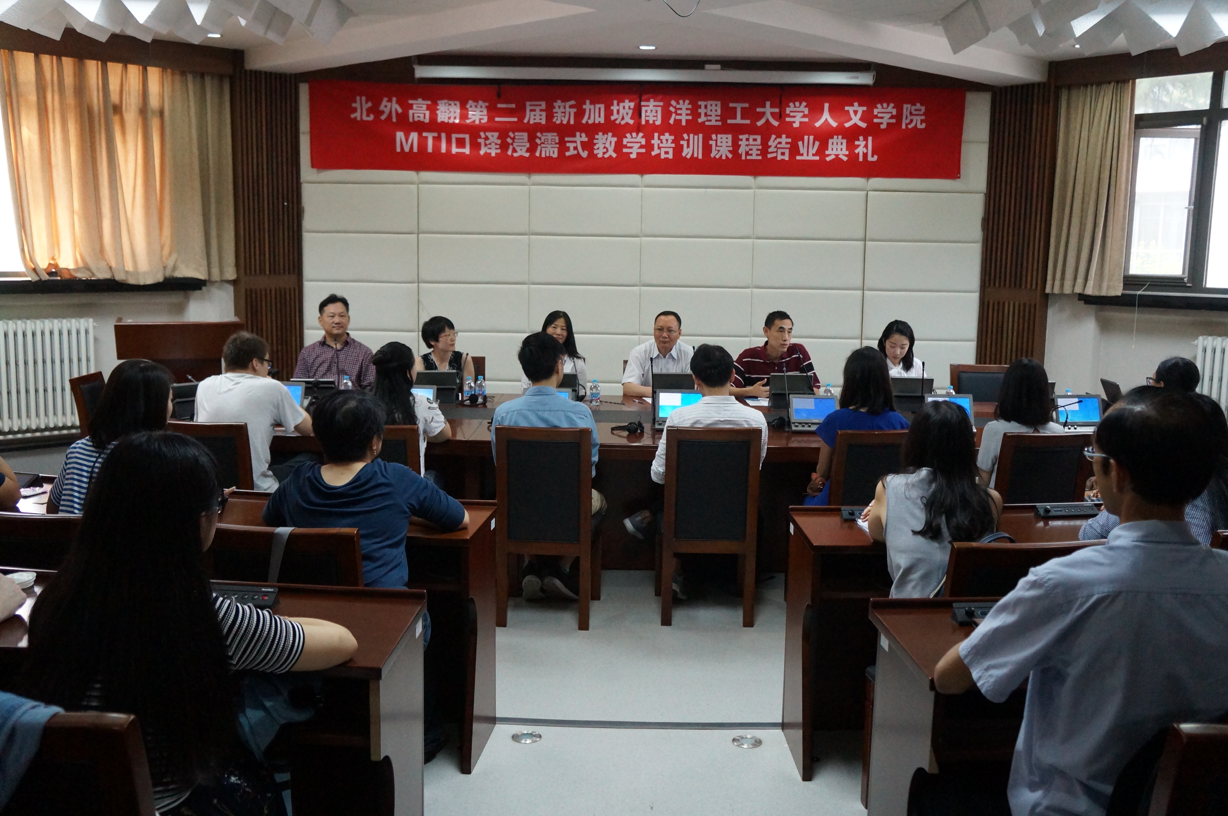 2017年6月30日,第二届新加坡南洋理工大学人文公司MTI口译浸濡式教学培训课程,经过六周高强度、紧张而有序的学习和教学过程,在太阳成集团tyc7111cc结业。