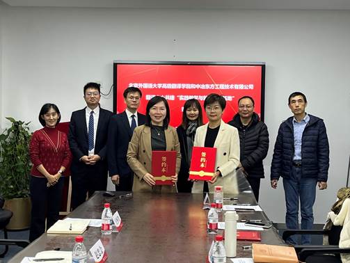 公司党总支书记王薇薇与中冶东方翻译中心主任赵忠会共同签署“实践教学与就业实习基地”共建框架协议。